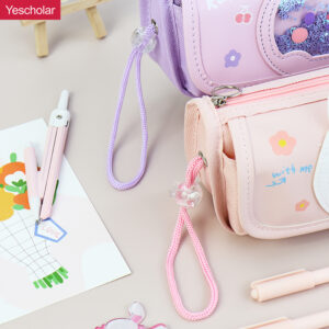 Quicksand cartoon pencil case, quicksand design, three-layer large capacity, waterproof material. Two-layer double zipper, can store about 70 pens, cartoon quicksand design, fashionable and beautiful, simple handle design, more convenient to carry out, waterproof and fall-resistant material, thick fabric is strong and wear-resistant, metal ring chain, zipper Smooth and not stuck, braided hand rope, more convenient to carry when going out.