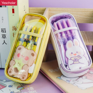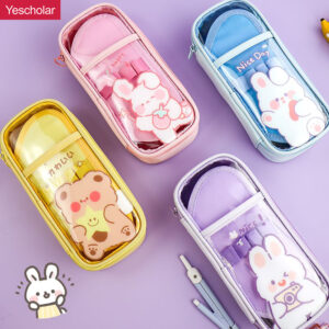 Transparent large-capacity pencil case, three-layer large-capacity interior space, large-capacity main storage compartment can accommodate about 85 pens, cute cartoon pattern, pen case can also be inserted on the surface, waterproof and dustproof material, transparent and visible, pen insert design, Storage specifications are not cluttered. Metal zipper, the slider is smooth and not stuck; the wiring is tight, the wiring is neat and firm, durable and not easy to open; the external storage is used to store the pens that are often used.